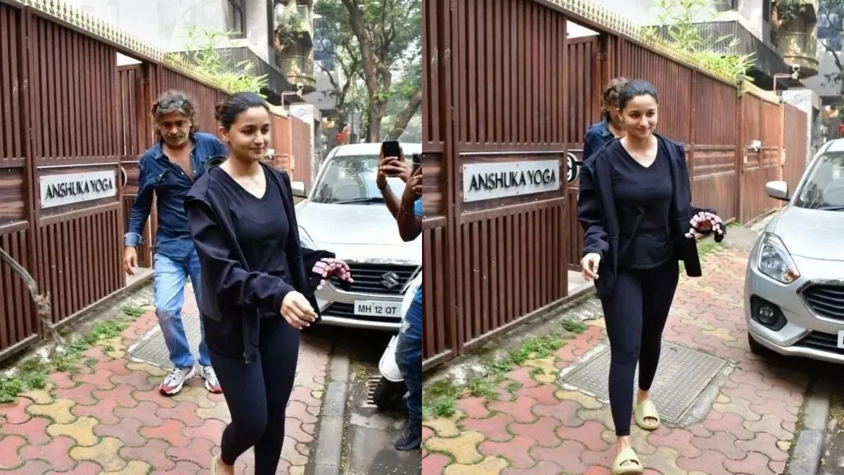 बुधवार को एक्ट्रेस को एक योग स्टूडियो से बाहर निकलते हुए स्पॉट किया गया। सोशल मीडिया पर वायरल हो रहे वीडियो में आलिया ब्लैक कलर के आउटफिट में नो-मेकअप लुक में नजर आ रही हैं। उन्होंने अपने बालों का बन बांधा हुआ है। मीडिया के कैमरों को देखकर वह मुस्कराती हुईं नजर आ रही हैं।