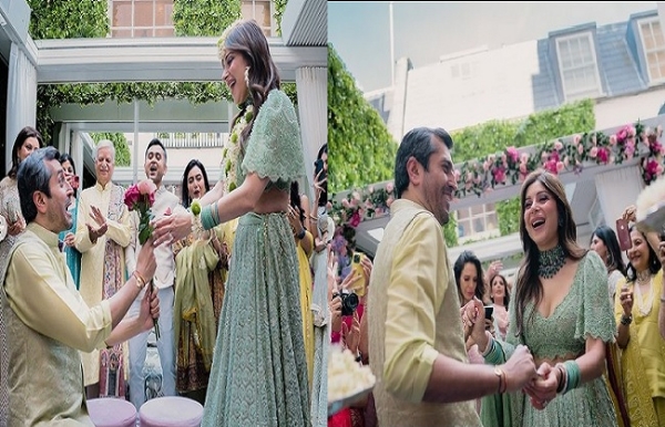 कनिका कपूर ने मेहंदी सेरेमनी पर ग्रीन रंग का आउटफिट और फूलों के जेवर पहने, जिनमें वह काफी ख़ूबसूरत नजर आ रहीं थी। वहीं मेहंदी सेरेमनी के दौरान कनिका और उनके होने वाले हसबैंड गौतम ने रोमांटिक होने का एक मौका नहीं छोड़ा। गौतम ने फंक्शन के दौरान कनिका को फूल और गुलदस्ता भी दिया। दोनों ने अपनी मेहंदी सेरेमनी में साथ में जमकर ठुमके लगाए और खूब मस्ती की। मेहंदी सेरेमनी की ये तस्वीरें सोशल मीडिया पर वायरल हो रही हैं।