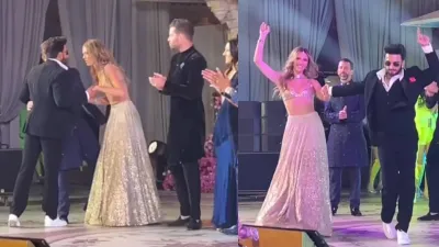 उदयपुर का सिटी पैलेस शुक्रवार को सितारों से जगमगा उठा। अमेरिकी अरबपति रामा राजू मंटेना और पद्मजा मंटेना की बेटी नेत्रा मंटेना की संगीत सेरेमनी के साथ तीन दिवसीय इवेंट की शुरुआत हुई, जिसमें बॉलीवुड सितारों के साथ ही कई बड़े इंटरनेशनल सेलिब्रिटी भी शामिल हुए। राजू मंटेना और पद्मजा मंटेना की बीटे नेत्रा उदयपुर में शादी के बंधन में बंधने वाली हैं, जिसमें अमेरिकी राष्ट्रपति डोनाल्ड ट्रंप के बेटे डोनाल्ड ट्रंप जूनियर भी शामिल हुए। डोनाल्ड ट्रंप जूनियर के साथ उनकी गर्लफ्रेंड भी इस हाई प्रोफाइल शादी का हिस्सा बनीं। इस बीच बॉलीवुड स्टार रणवीर सिंह का भी एक वीडियो सुर्खियां बटोर रहा है, जिसमें रणवीर, डोनाल्ड ट्रंप जूनियर की गर्लफ्रेंड के साथ ‘झुमका’ पर थिरकते नजर आ रहे हैं।