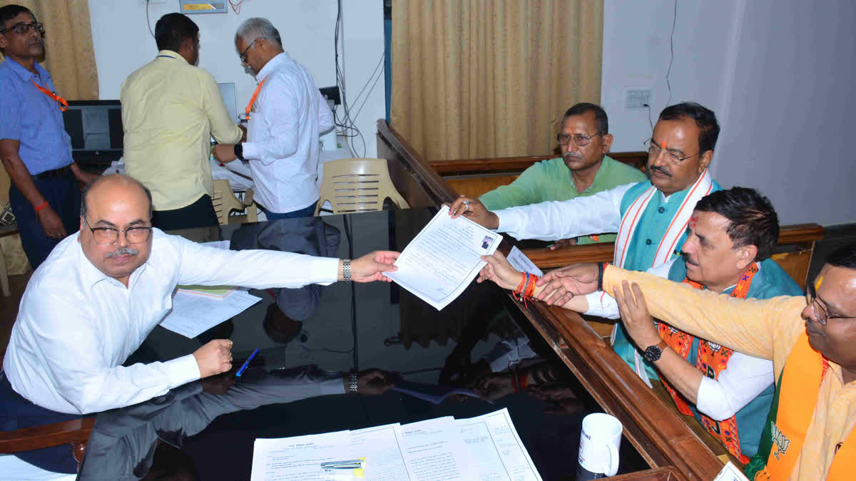 भाजपा प्रत्याशियों ने किया नामांकन, डिप्टी सीएम ने विपक्ष पर साधा निशाना : संगम नगरी प्रयागराज की दो लोकसभा सीट इलाहाबाद और फूलपुर के भाजपा प्रत्याशियों ने बुधवार को नामांकन पत्र दाखिल किया है. नामांकन से पहले भाजपा के दोनों प्रत्याशियों के साथ डिप्टी सीएम केशव प्रसाद मौर्य ने कैबिनेट मंत्री नंद गोपाल गुप्ता समेत भाजपा के दूसरे नेताओं ने मिलकर रोड शो किया. इस दौरान डिप्टी केशव प्रसाद मौर्य ने कांग्रेस के साथ ही दूसरे विपक्षी दलों पर भी हमला बोला है.