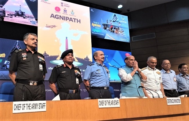 नेशनल मीडिया सेंटर में रक्षा मंत्री राजनाथ सिंह ने ‘अग्निपथ’ योजना के बारे में जानकारी देते हुए बताया कि रक्षा मंत्रालय की यह स्कीम युवाओं को देश सेवा का मौका देने के साथ ही उन्हें तकनीकी तौर पर भी सुधारने में मदद करेगी। इस योजना से विभिन्न क्षेत्रों में नए कौशल के साथ रोजगार के अवसर बढ़ेंगे। ‘अग्निपथ’ योजना के तहत सशस्त्र बलों का युवा प्रोफाइल तैयार करने का प्रयास किया जा रहा है। यह स्कीम बनाने के लिए हमने अन्य देशों के मॉडल का अध्ययन किया है लेकिन देश के युवाओं के हित में निर्णय लिए गए हैं। उन्होंने कहा कि हमने दूसरों की नकल करने की कोशिश नहीं की है। जो नकल करके अपनी अकल बढ़ाने की कोशिश करते हैं, उनकी शक्ल खराब हो जाती है।