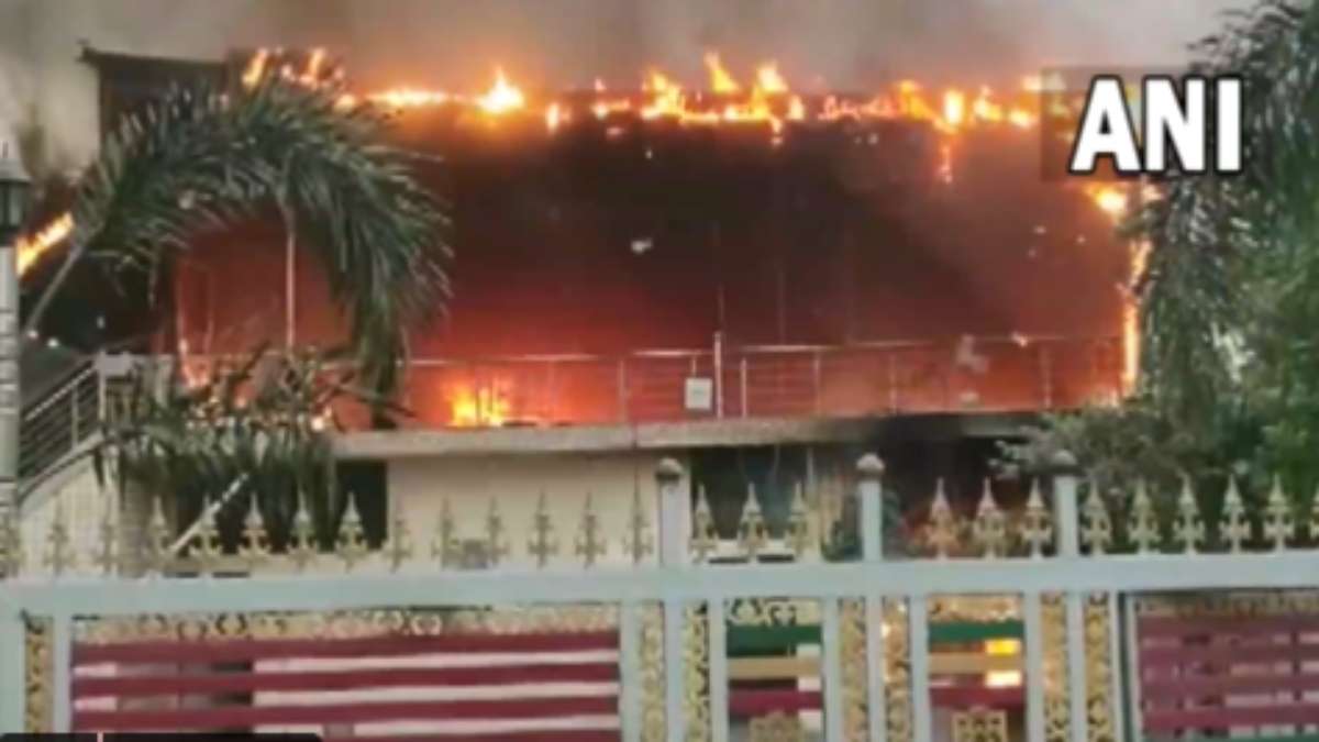 #WATCH | Mob sets fire to a few buildings after a violent clash between two groups over a parking dispute in Jethuli village,Patna dist