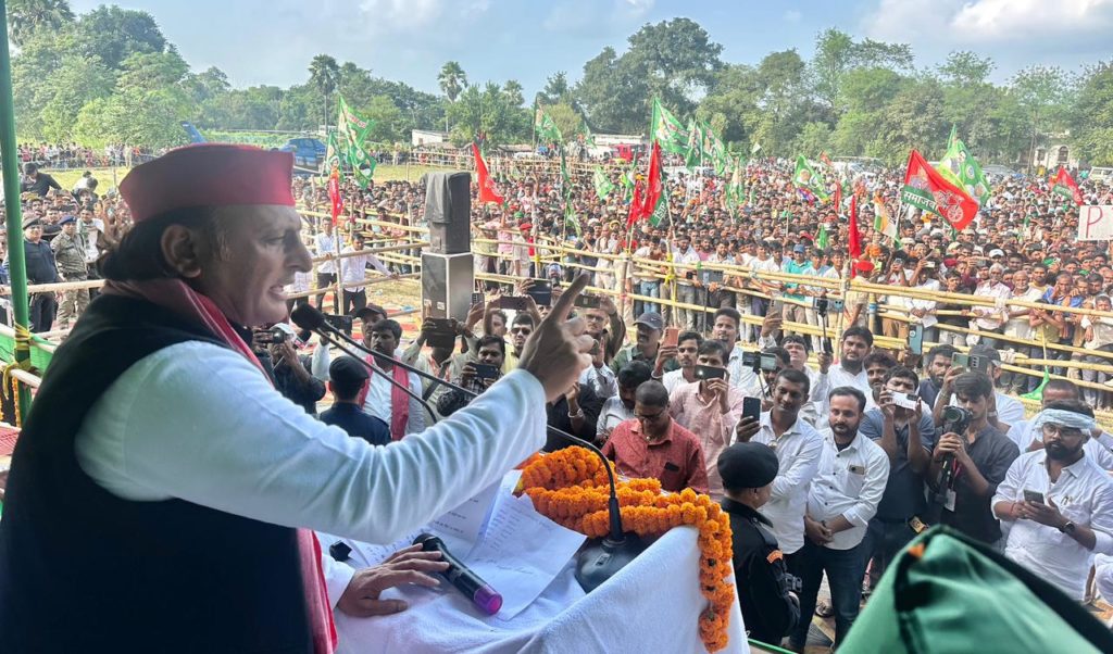 अखिलेश यादव ने कहा कि बिहार की जनता इस बार बदलाव के लिए वोट करने जा रही है। बिहार से भाजपा का सफाया होना तय है। भाजपा ने बिहार को गरीबी और पलायन के अलावा कुछ नहीं दिया है। भाजपा केन्द्र में 10 साल से सरकार में है और यहां के मुख्यमंत्री 20 साल से सत्ता में है। इस चुनाव में बिहार की जनता 30 सालों का हिसाब लेगी। उन्होंने कहा कि बिहार में नौजवानों के पलायन के लिए भाजपा की सरकार जिम्मेदार है। अब बिहार की जनता भाजपा का पलायन करा देगी। यह विधानसभा चुनाव बिहार और बिहार के युवाओं के भविष्य का चुनाव है। बिहार में इंडिया गठबंधन की सरकार बनेगी। तेजस्वी यादव मुख्यमंत्री बनेंगे। नौजवानों को नौकरी और रोजगार देंगे।