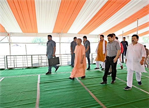 सीएम योगी ने काशी में किया पीएम मोदी के सभा स्थल का निरीक्षण