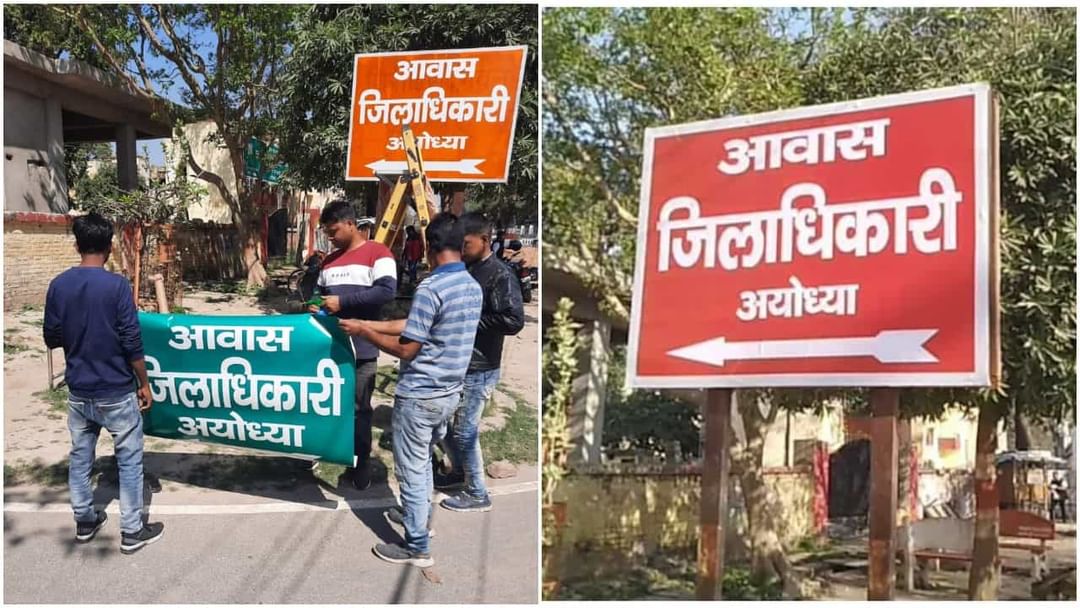 अयोध्या DM आवास पर ‘रंगों का खेल’, 24 घंटे में फिर बदला बोर्ड का कलर; अब भगवा से किया लाल