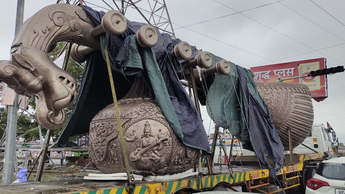 14 टन की 45 डिग्री एंगल पर खड़ी मां सरस्वती की वीणा होगी आकर्षण का केंद्र