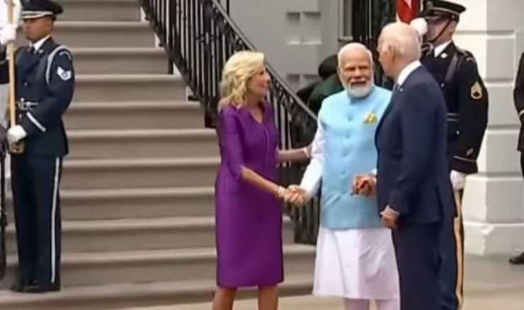 उन्होंने कहा कि दोनों देश स्वतंत्रता से प्यार करते हैं। दोनों देशों के संविधान “वी द पीपुल” (हम देश के नागरिकगण) से शुरू होते हैं। इस अवसर पर दोनों देशों की राष्ट्रीय गान की धुनें बजायी गयीं। इससे पहले मोदी के राष्ट्रपति भवन व्हाइट हाउस पहुंचने पर लाल कालीन बिछाकर पूर्ण राजकीय सम्मान के साथ उनका स्वागत किया गया। इस अवसर पर उपराष्ट्रपति कमला हैरिस, विदेश मंत्री एंटनी ब्लिंकन और व्हाइट हाउस के वरिष्ठ अधिकारियों के अलावा वाशिंगटन में भारत के राजदूत तरणजीत सिंह संघू भी उपस्थित थे