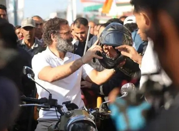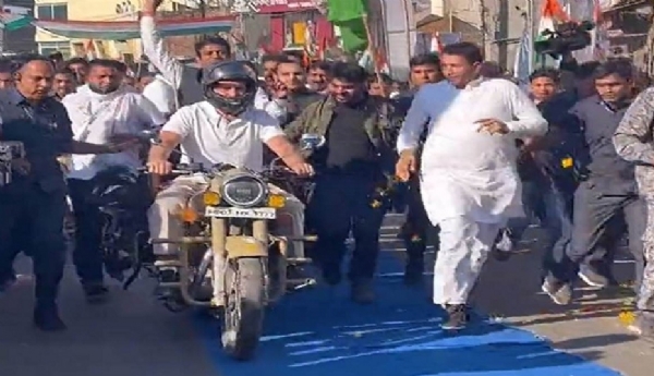 भोपाल। भारत जोड़ो यात्रा के मध्य प्रदेश में पांचवें दिन राहुल गांधी अलग ही रंग में नजर आए। उन्होंने यात्रा के दौरान इंदौर के पास एबी रोड पर स्थित ग्राम राऊ में बुलेट बाइक की सवारी की। इस दौरान क्षेत्रीय कांग्रेस विधायक जीतू पटवारी उनके पीछे दौड़ते नजर आए।