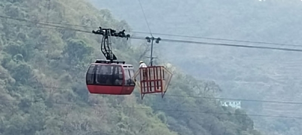 सोलन। जिले के परवाणू में राष्ट्रीय उच्च मार्ग पर स्थित टिम्बर ट्रेल होटल की रोपवे ट्रॉली में सोमवार दोपहर अचानक खराबी आने से 11 लोग फंस गए जिनमें से दो लोगों को सुरक्षित निकाल लिया गया है। टिम्बर ट्रेल होटल की रोपवे ट्रॉली सोमवार को दोपहर करीब 1:45 बजे 11 लोगों को लेकर नीचे आ रही थी लेकिन तकनीकी खराबी से ट्रॉली रास्ते में ही फंस गई। इसके बाद पुलिस और अग्निशमन विभाग को सूचना दी गई। अग्निशमन व पुलिस की टीम ने बचाव कार्य शुरू करके दो लोगों को सुरक्षित निकाल लिया है।