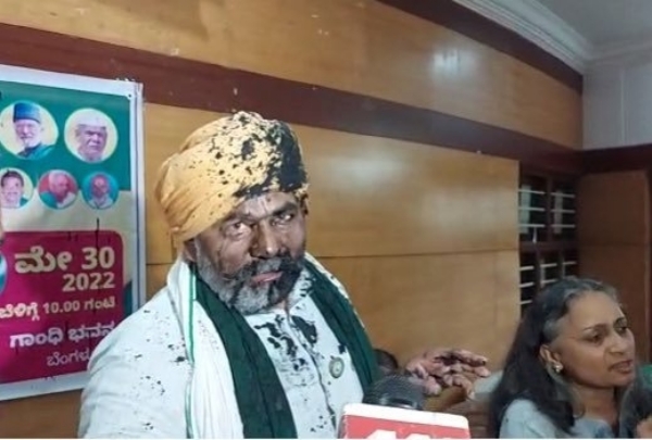 बेंगलुरु। किसान नेता राकेश टिकैत पर सोमवार को एक प्रेस कॉन्फ्रेंस के दौरान हमला किया गया और उनपर स्याही फेंकी गई। इस घटना के बाद पुलिस ने 3 लोगों को हिरासत में लिया है। हमले के समय टिकैत बेंगलुरु के प्रेस क्लब के गांधी भवन में पत्रकार वार्ता को संबोधित कर रहे थे। उनपर हमला हुआ और उनपर काली स्याही फेंकी गई।
