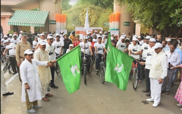 लखनऊ। पर्यावरण के प्रति जागरुकता के उद्देश्य से सोमवार को लखनऊ चिड़ियाघर द्वारा साइकिल रैली निकाली गयी। साइकिल रैली को वन मंत्री (स्वतंत्र प्रभार) डॉ अरुण सक्सेना और वन राज्यमंत्री के.पी. मलिक ने हरी झण्डी दिखाकर रवाना किया। राज्य मंत्री (स्वतंत्र प्रभार) डॉ अरुण सक्सेना ने कहा कि हम आजादी के 75 साल का महोत्सव मना रहे हैं। हम सभी को संकल्प लेना होगा कि कम से कम एक पौधा अवश्य लगायें। उन्होंने पौधा लगाने के साथ-साथ पौधे को सुरक्षित एवं संरक्षित किये जाने पर भी बल दिया। वन मंत्री ने साइकिल रैली में भाग लेने वालों का उत्साहवर्धन करते हुए कहा कि आप लोग देश के जागरूक नागरिक हैं, इसी लिए आज यहां उपस्थित हुए हैं।
