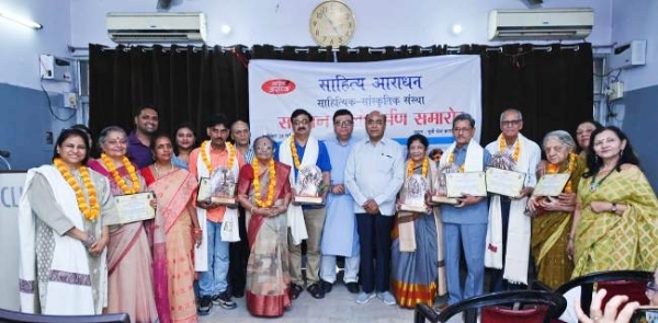 लखनऊ। साहित्यिक संस्था साहित्य आराधना की ओर से शनिवार को यू.पी. प्रेस क्लब में वर्ष-2022 के सम्मान-पुरस्कार वितरण एवं लोकार्पण समारोह आयोजित किया गया। समारोह में मुख्य अतिथि वरिष्ठ साहित्यकार डॉ सुधाकर अदीब एवं संजीव जायसवाल ‘संजय‘ की विशेष रूप उपस्थित हुए। इस अवसर पर बाल कहानी संग्रह ‘कलरव‘ का लोकर्पण भी हुआ।