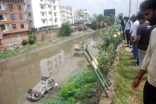 अनियंत्रित होकर कुकरैल नाले में पलटी कार