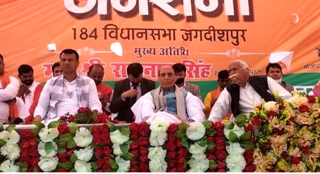 उत्तर प्रदेश के अमेठी जनपद में आज भारत के रक्षा मंत्री राजनाथ सिंह अपने एकदिवसीय दौरे पर जिले की 184 विधानसभा जगदीशपुर से भारतीय जनता पार्टी के प्रत्याशी एवं उत्तर प्रदेश सरकार में राज्य मंत्री सुरेश पासी के समर्थन में वोट मांगने के लिए मौर्य बाग में पहुंचे। जहां पर बीजेपी नेताओं एवं कार्यकर्ताओं ने रक्षा मंत्री राजनाथ सिंह का जोरदार स्वागत किया वहीं मंच पर पहुंचे राजनाथ सिंह को उत्तर प्रदेश सरकार के राज्य मंत्री सुरेश पासी ने गदा भेंट कर सम्मानित किया। मंच से बीजेपी प्रत्याशी सुरेश पासी ने बोलते हुए कहा कि जगदीशपुर की जनता ने वर्ष 2017 में हमको पूरा आशीर्वाद दिया था। हमने अपने क्षेत्र में शिक्षा को लेकर 3 इंटर कॉलेज व महाविद्यालय, 2 नेशनल हाईवे पूर्वांचल एक्सप्रेस वे जगदीशपुर को विधानसभा को दिया है। होटल मैनेजमेंट, कृषि विज्ञान केंद्र भी मिला है। जगदीशपुर में समाजवादी पार्टी के कार्यकर्ताओं द्वारा सड़कों पर हड़पी गई कीमती जमीन हमने वापस कराई है । वर्ष 2022 के चुनाव को जीतने के बाद जगदीशपुर को तहसील और नगर पंचायत बनाना है। अभी जगदीशपुर का विकास कार्य बाकी है जिसे पूरा करना है। इसके उपरांत भारत के रक्षा मंत्री राजनाथ सिंह ने मंच संभालते हुए भारत माता की जय के साथ अपना संबोधन शुरू किया। उन्होंने कहा कि आज मैं बहुत लंबे समय के बाद जगदीशपुर आया हूं। वर्ष 2012 में आया था और आज मैं दूसरी बार 2022 में आया । मैं सुरेश पासी के कामकाज को जानता हूं जगदीशपुर के विकास के बारे में योगी जी से लगातार बात करता रहा हूं। मैं दावे के साथ कहता हूं कि सुरेश के ऊपर भ्रष्टाचार का एक भी आरोप नहीं लगा है। बीजेपी ने जो घोषणा की है उसे पूरा किया है। अगर पहले की सरकार सभी घोषणा पूरा कर देती तो आज हमारा देश पीछे ना होता । हम जनता के भरोसे को टूटने नहीं देंगे लक्ष्मी जी जब घर आती हैं तो कमल के फूल पर बैठकर आती हैं। पीएम किसान सम्मान निधि, गैस, आवास, मिलना लक्ष्मी के आने का संकेत है। हमारी पार्टी जनता की हरदम चिंता करती है 1 साल के अंदर हिंदुस्तान के एक भी घर नहीं बचेगा जहां नल नहीं पहुंचेगा। प्रधानमंत्री जनधन योजना के तहत सब का खाता खुला ₹6000 सीधे सब के खाते में पहुंचा। बीजेपी में भ्रष्टाचार नहीं है बीजेपी सरकार आयुष्मान योजना के तहत गरीबों का ₹500000 तक निशुल्क इलाज करवा रही है। लोगों के घर तक गैस सिलेंडर पहुंचा आगे सरकार अगर बनती है तो होली और दिवाली पर दो गैस सिलेंडर मुफ्त मिलेगा । हम लोगों ने अयोध्या की धरती पर भव्य राम मंदिर का निर्माण कार्य शुरू किया है। अदालत के फैसले का स्वागत किया । काशी विश्वनाथ मंदिर को अंग्रेजों ने ढकने का काम किया था लेकिन हमारे प्रधानमंत्री ने आज मंदिर को सुंदर बना दिया । यूपी में सरकार बनी तो 