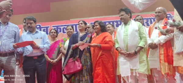 वाराणसी। केंद्र में मोदी सरकार के आठ वर्ष पूरे होने पर भाजपा की ओर से बड़ा लालपुर स्थित पंडित दीनदयाल उपाध्याय हस्तकला संकुल में बुधवार को आयोजित गरीब कल्याण जनसभा में केंद्रीय मंत्री साध्वी निरंजन ज्योति भी शामिल हुईं। जनसभा में केन्द्रीय मंत्री ने कहा कि प्रधानमंत्री नरेन्द्र मोदी के नेतृत्व में भारत का मान विश्व पटल पर बढ़ा है। उन्होंने कहा कि वर्ष 2014 से पूर्व देश विषम, विकट एवं विकराल परिस्थिति से गुजर रहा था। एक असमंजस की स्थिति बनी हुई थी कि देश का भविष्य क्या होगा। देश कहां जा रहा है और कहां जाकर रुकेगा। लेकिन भोलेनाथ की कृपा से प्रधानमंत्री नरेन्द्र मोदी के रूप में एक ऐसे व्यक्तित्व ने देश की बागडोर सभाली है कि आज पूरी दुनिया में भारत का मान बढ़ा है और राष्ट्र सुरक्षित हुआ है।