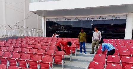 लखनऊ। अटल बिहारी बाजपेयी अन्तरराष्ट्रीय क्रिकेट स्टेडियम (इकाना) में 25 मार्च को होने जा रहे मुख्यमंत्री शपथ ग्रहण समारोह से पहले मंगलवार को नगर निगम की ओर से वृहद स्तर पर स्वच्छता अभियान चलाया गया। लखनऊ से सुल्तानपुर मार्ग पर शहीद पथ के किनारे बने विशालकाय इकाना स्टेडियम में सुबह सात बजे नगर निगम के अधिकारियों एवं कर्मचारियों का पहुंचना हुआ। नगर आयुक्त के निर्देश पर नगर निगम की टीम सम्पूर्ण स्टेडियम के स्वच्छता कार्य में जुटी। स्वच्छता कार्य को शुरु करते हुए कर्मचारियों ने एक—एक कुर्सी को कपड़े से साफ कर चमका दिया।
