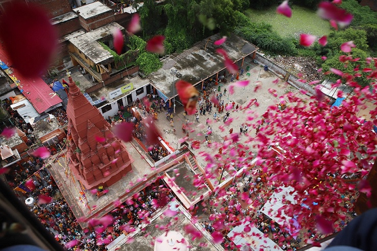 श्रावण मास में कुम्भ नगरी प्रयागराज में संगम और गंगा के सभी तट केसरिया रंग से रंग चुके हैं। पुराणों में वर्णित आदि शिवालय श्री ब्रह्मेश्वर महादेव मंदिर, श्री मनकामेश्वर मंदिर और संगम के घाटों से बाबा विश्वनाथ की नगरी काशी गंगा जल ले जा रहे शिव भक्त कांवड़ियों की लम्बी-लम्बी कतारों पर सोमवार को हेलीकाप्टर से पुष्प वर्षा की गई। डीएम प्रयागराज संजय कुमार खत्री का कहना है कि सरकार के निर्देश पर प्रयागराज में शिवभक्त कांवड़ियों पर हेलीकाप्टर से चार चरण में पुष्प वर्षा की गई। संगम और माँ गंगा के सभी तटों के अलावा जिले के उन सभी शिवालयों के मार्गों में जहां से ये शिव भक्त गुजरते हैं पुष्प बरसाए गए हैं।