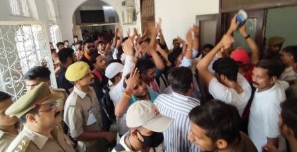 लखनऊ विश्वविद्यालय के हिंदी विभाग के एसोसिएट प्रोफेसर रविकांत के खिलाफ बर्खास्तगी पर अड़े विद्यार्थी परिषद के कार्यकर्ताओं ने स्थानीय पुलिस प्रशासन एवं चीफ प्राक्टर समेत विश्वविद्यालय के अधिकारियों ने समझाया लेकिन कार्यकर्ताओं ने एक बात नहीं मानी। विरोध करते हुए जमकर नारेबाजी की। इस पर प्रोफेसर रविकांत ने कार्रवाई करने की बात कही। इसके बाद मौके पर पुलिस बुला ली गयी। पुलिस उपनिरीक्षकों एवं सिपाहियों की मौजूदगी में प्रदर्शन उग्र होने लगा। तभी वहां विश्वविद्यालय प्रशासन ने हस्तक्षेप किया। इस बीच कुलपति कार्यालय को भी सूचना दी गयी।
