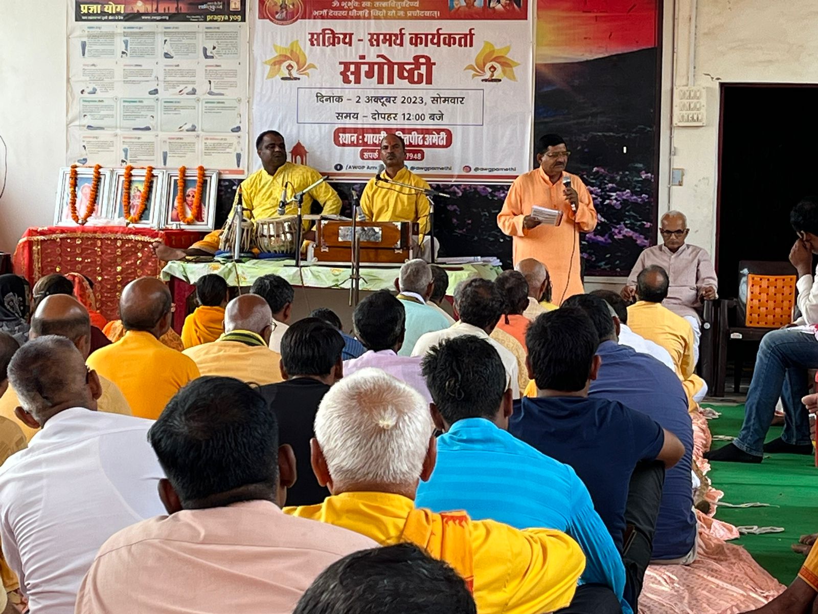 गायत्री शक्तिपीठ अमेठी पर आयोजित सक्रिय समर्थ कार्यकर्ता संगोष्ठी में गायत्री परिवार के सैकड़ों कार्यकर्ताओं ने गुरुदेव के विचारों व कार्यक्रमों को अमेठी के गाँव-गाँव, घर-घर पहुँचाने का संकल्प लिया।