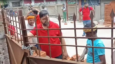 गेट पर ताला लगाकर उठाई बाउंड्री वॉल