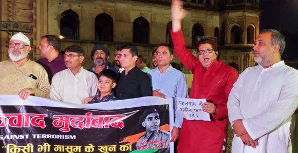लखनऊ। पहलगाम आतंकी हमले के पीड़ितों के समर्थन में लखनऊ में कैंडल मार्च एवं विरोध प्रदर्शन का आयोजन हुआ।लखनऊ के ऐतिहासिक घंटाघर से शुरू होकर रूमी गेट तक एक शांतिपूर्ण कैंडल मार्च एवं विरोध प्रदर्शन का आयोजन किया गया। यह मार्च हाल ही में हुए पहलगाम आतंकी हमले में शहीद हुए निर्दोष नागरिकों को श्रद्धांजलि देने एवं उनके परिजनों के प्रति एकजुटता प्रकट करने के उद्देश्य से किया गया।