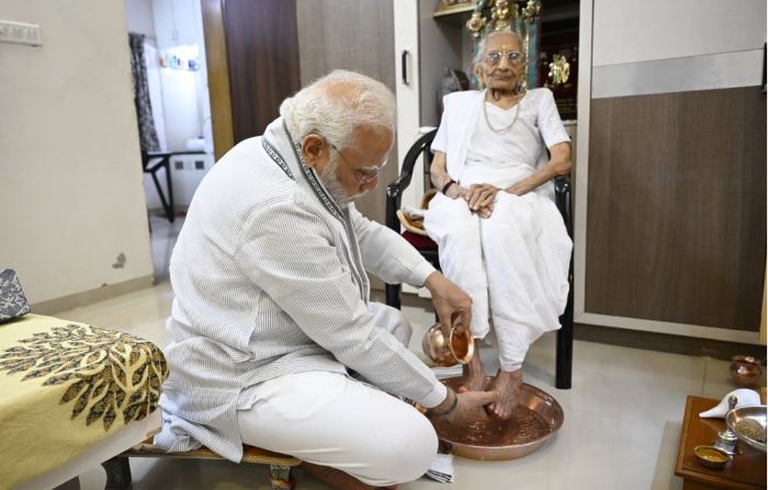 पीएम मोदी ने मां हीराबेन के 100वें जन्मदिन पर लिया आर्शीवाद, पैर धोए और पानी को आंखों से लगाया