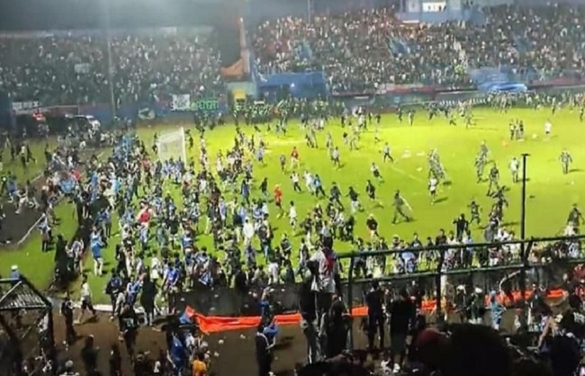घटना शनिवार रात पूर्वी जावा के मलंग रीजेंसी के कंजुरुहान स्टेडियम में इंडोनेशियाई लीग बीआरआई लीगा 1 के एक फुटबॉल मैच के बाद हुई। इलाके के पुलिस प्रमुख, निको अफिंटा ने कहा कि अरेमा एफसी और पर्सेबाया सुरबाया के बीच मैच के बाद हारने वाले पक्ष के समर्थकों द्वारा पिच पर हमला कर दिया गया। जिसके बाद अधिकारियों को आंसू गैस छोड़नी पड़ी, जिससे भगदड़ मच गई थी।